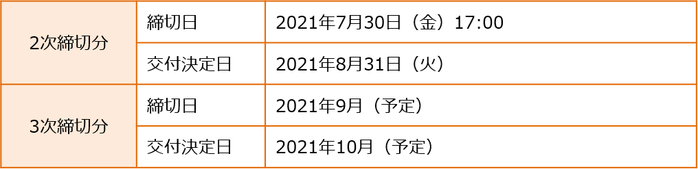 複数回の締め切りを設け、それまでに受け付けた申請を審査し交付決定を行う予定になっています。
