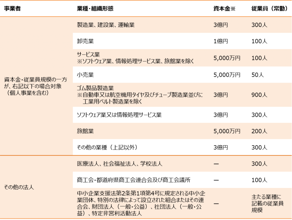 対象企業は、中小企業・小規模事業者のお客様となります。卸売業や小売業・製造業・サービス業など、多くのお客様が対象です。